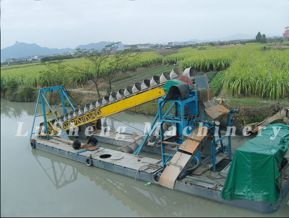淘金船是水下河道沙金礦開采的選擇,是所有的河道沙金礦都采用采金船進行開采,這種采金船有多種功能。采金船可以完成以下沙金礦的回收作用。